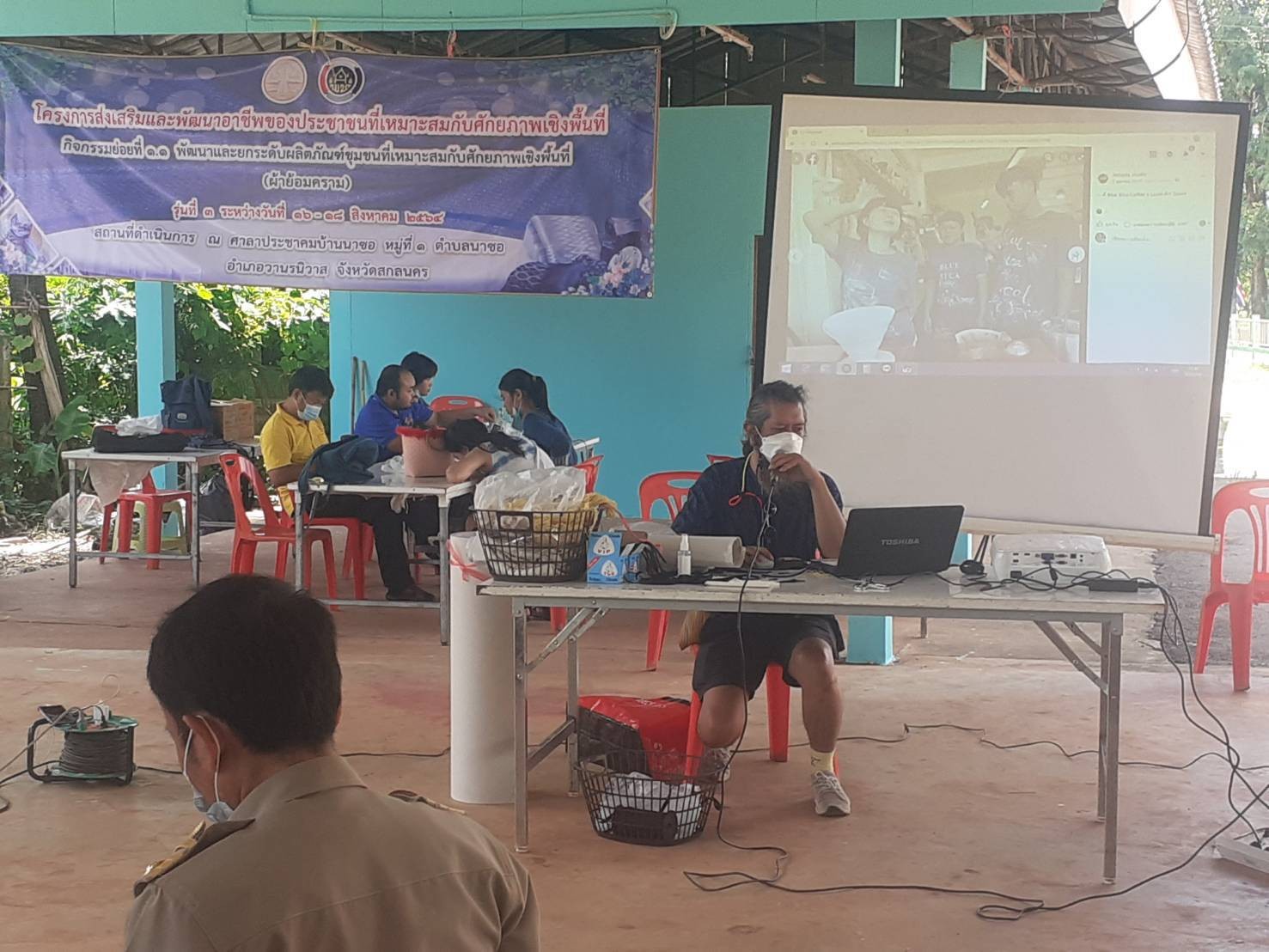 รายละเอียด : วันที่ 18 สิงหาคม พ.ศ. 2564 งานสวัสดิการสังคม กองการศึกษา เข้าร่วมโครงการส่งเสริมและพัฒนาอาชีพของประชาชนที่เหมาะสมกับศักยภาพเชิงพื้นที่ กิจกรรมย่อยที่ 1.1 พัฒนาและยกระดับผลิตภัณฑ์ชุมชนที่เหมาะสมกับศักยภาพเชิงพื้นที่ (ผ้าย้อมคราม) รุ่นที่ 3 ได้จัดขึ้นระหว่างวันที่ 16-18 สิงหาคม 2564 ณ ศาลาประชาคมบ้านนาซอ หมู่ที่ 1 ตำบลนาซอ จัดโดยสำนักงานพัฒนาชุมชนอำเภอวานรนิวาส จังหวัดสกลนคร