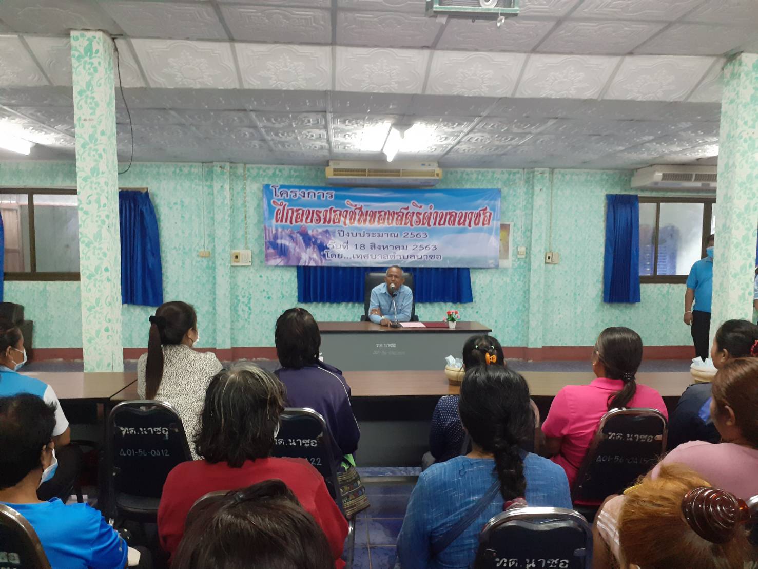 รายละเอียด : นายบรรจบ แพงพิมพ์โล้ นายกเทศมนตรีตำบลนาซอ ให้เกียรติเป็นประธานในพิธีเปิด โครงการฝึกอบรมให้ความรู้ของกลุ่มสตรีตำบลนาซอ ประจำปีงบประมาณ ๒๕๖๓ พร้อมด้วยสมาชิกสภาเทศบาลตำบลนาซอ หัวหน้าส่วนราชการและผู้เข้ารับการฝึกอบรม จำนวน 55 คน ในวันที่ ๑๘ สิงหาคม พ.ศ.๒๕๖๓ ณ ห้องประชุมเทศบาลตำบลนาซอ