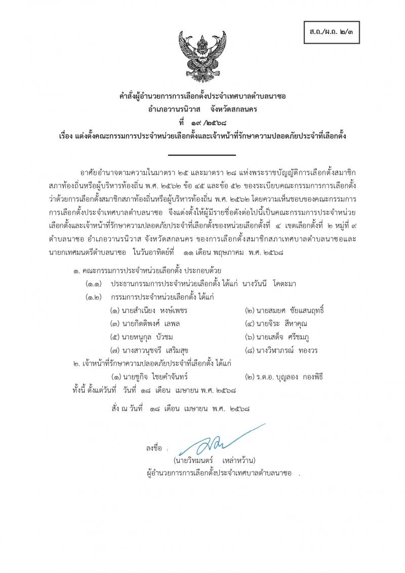 คำสั่งแต่งตั้งคณะกรรมการประจำหน่วยเลือกตั้งและเจ้าหน้าที่รักษาความปลอดภัยประจำที่เลือกตั้ง เขต2