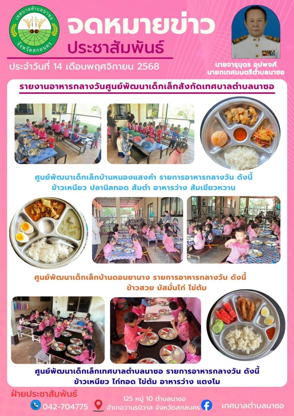 รายงานอาหารกลางวันศูนย์พัฒนาเด็กเล็กสังกัดเทศบาลตำบลนาซอ