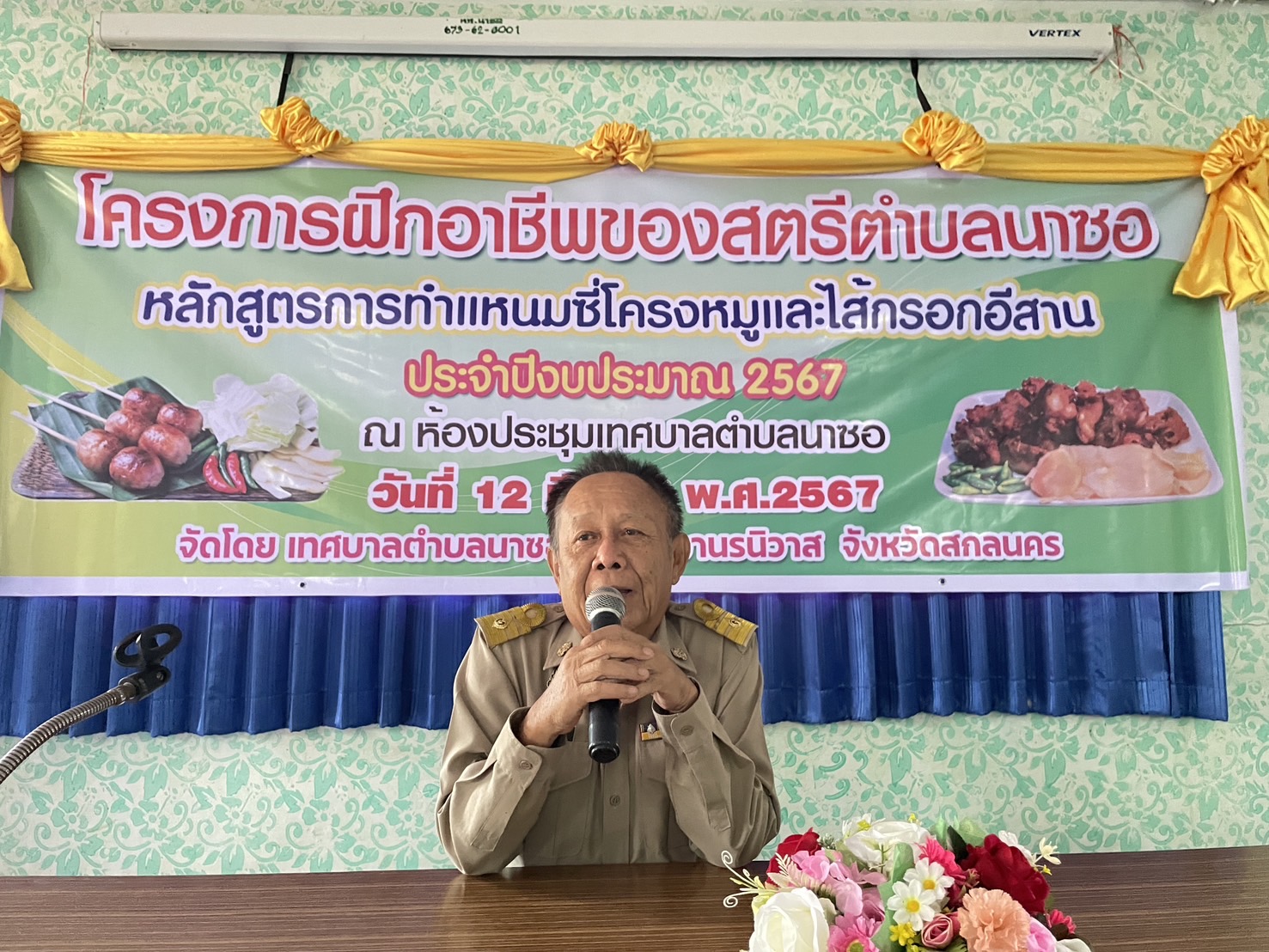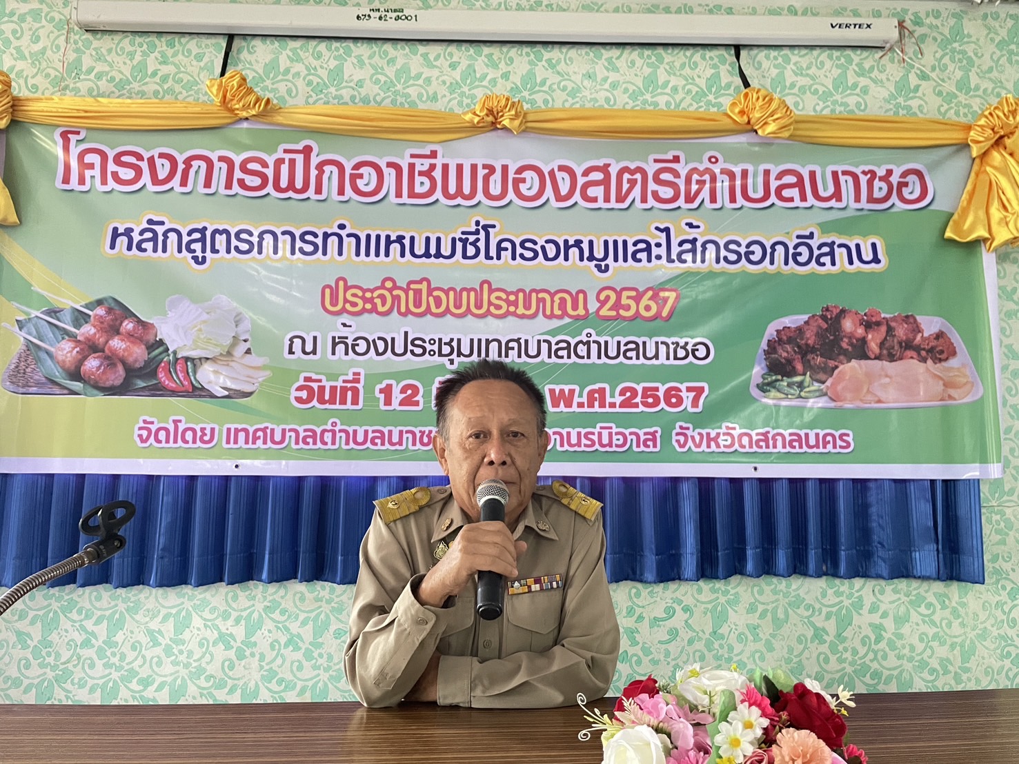 งานสวัสดิการสังคม สำนักปลัด เทศบาลตำบลนาซอ ได้จัดทำโครงการส่งเสริมอาชีพให้กับกลุ่มสตรีในพื้นที่ตำบลนาซอ ประจำปีงบประมาณ 2567 ภายใต้โครงการฝึกอาชีพของสตรีตำบลนาซอ หลักสูตรการทำแหนมซี่โครงหมู และไส้กรอกอีสาน วันที่ 12 มีนาคม 2567 โดยนายจารุบุตร อุปพงศ์ นายกเทศมนตรีตำบลนาซอ เป็นประธานพิธีเปิด ณ หอประชุมเทศบาลตำบลนาซอ
