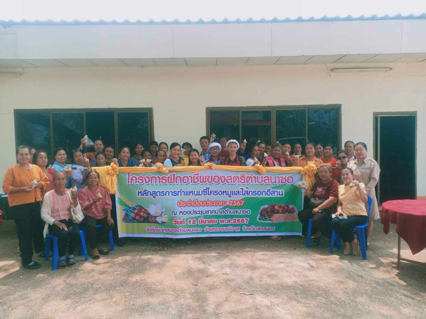 ฝึกอาชีพของสตรีตำบลนาซอ หลักสูตรการทำแหนมซี่โครงหมูและไส้กรอกอีสาน ประจำปีงบประมาณ 2567