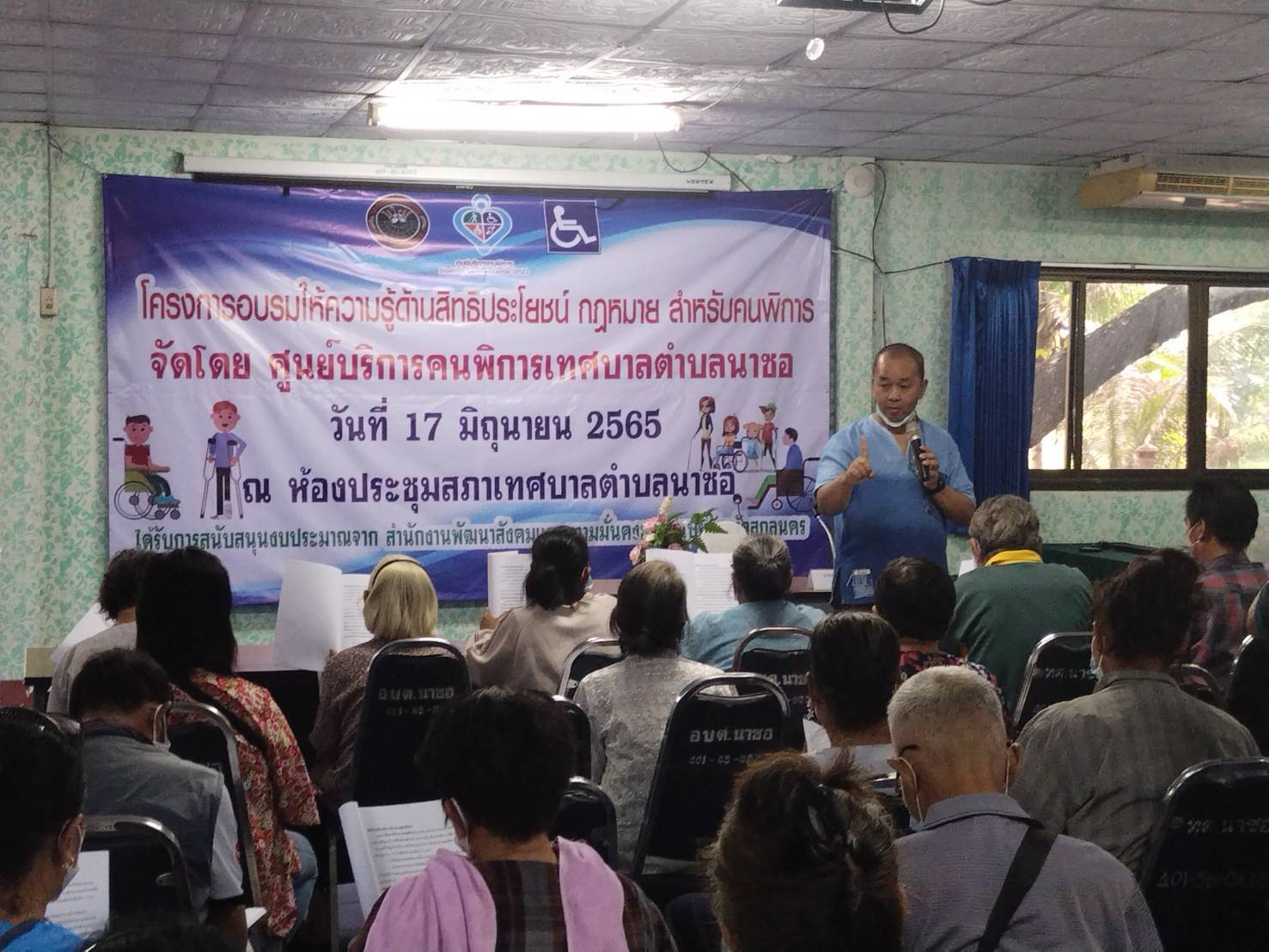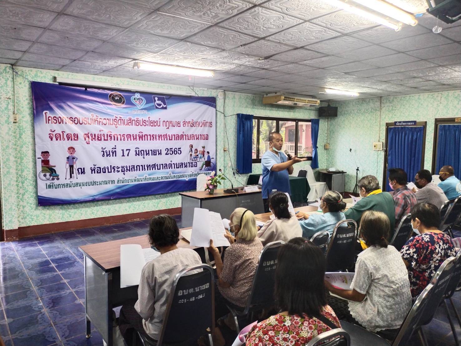 ศูนย์บริการคนพิการเทศบาลตำบลนาซอ จัดโครงการอบรมให้ความรู้ด้านสิทธิประโยชน์ กฎหมาย สำหรับคนพิการ ประจำปีงบประมาณ 2565