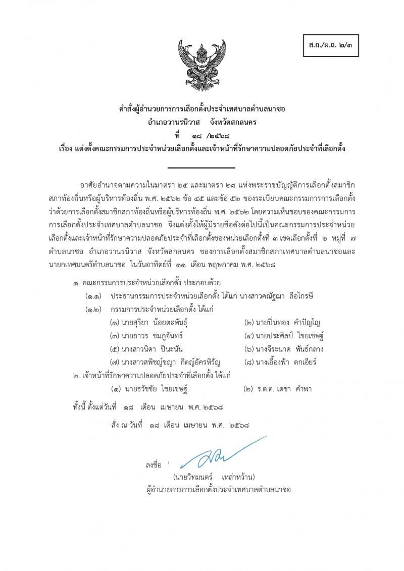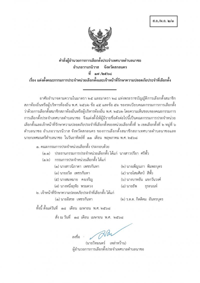 คำสั่งแต่งตั้งคณะกรรมการประจำหน่วยเลือกตั้งและเจ้าหน้าที่รักษาความปลอดภัยประจำที่เลือกตั้ง เขต2